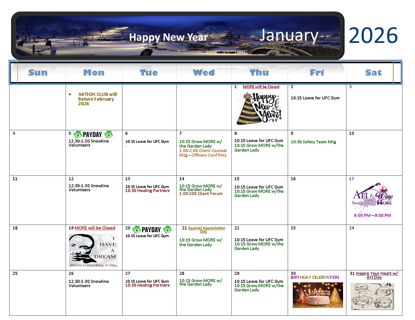 Welcome to our Monthly Events Calendar — we’re so glad you’re here!